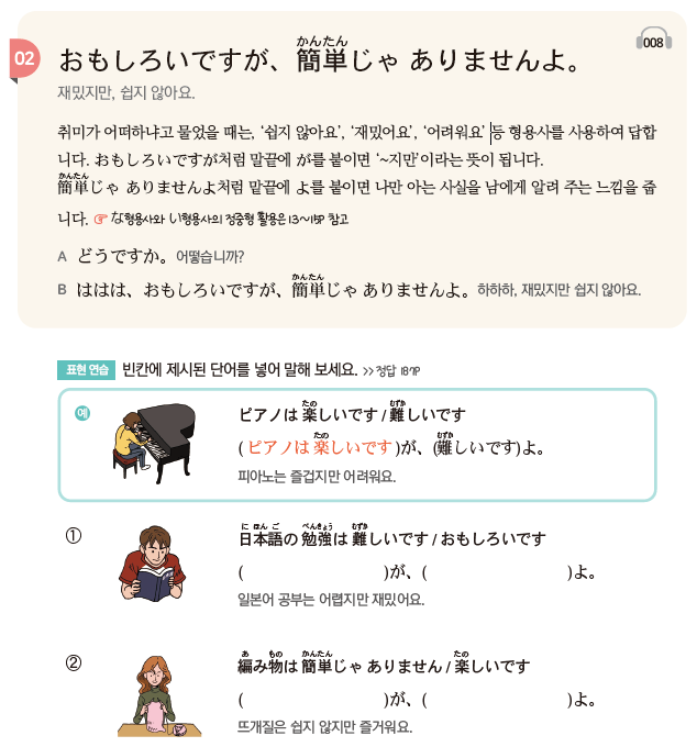 취미가 어떠하냐고 물었을 때 대답하기. ‘쉽지 않아요’, ‘재밌어요’, ‘어려워요’