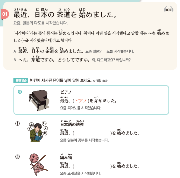 취미나 어떤 일을 시작했다고 말할 때. 요즘, 일본의 다도를 시작했습니다.